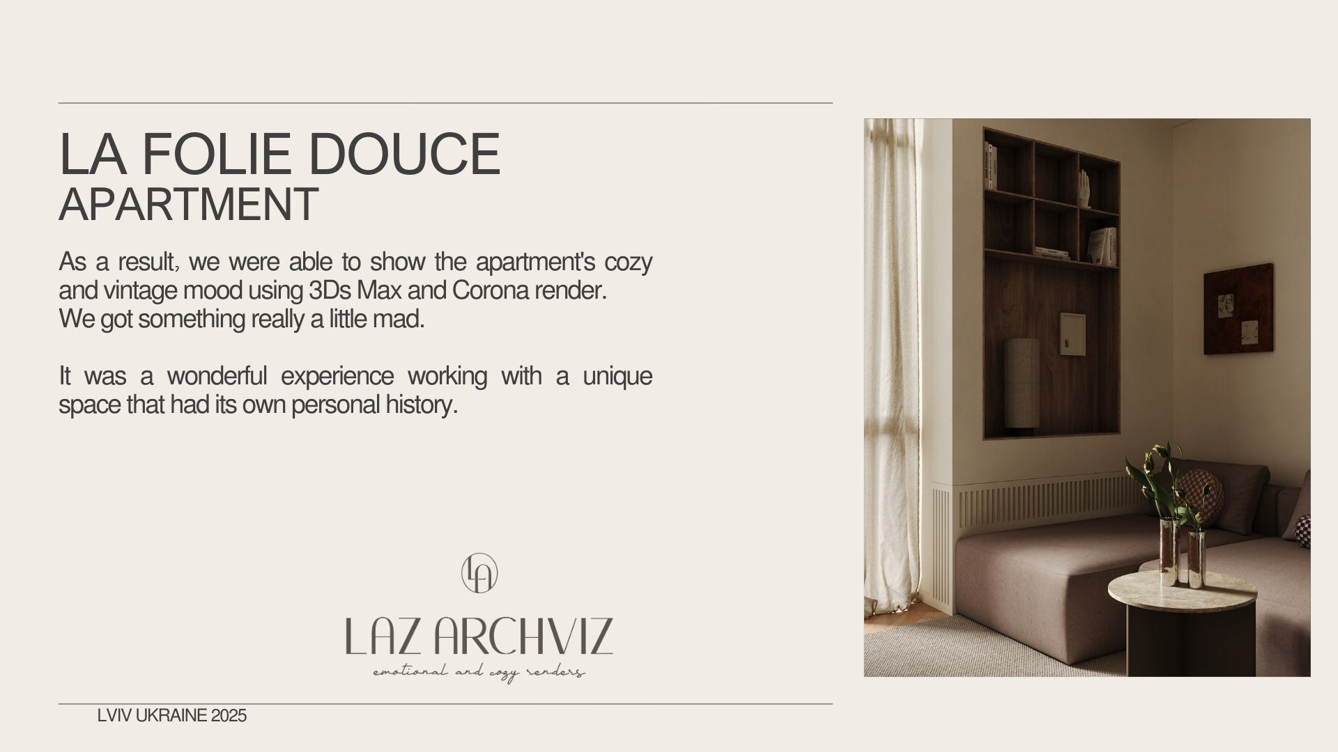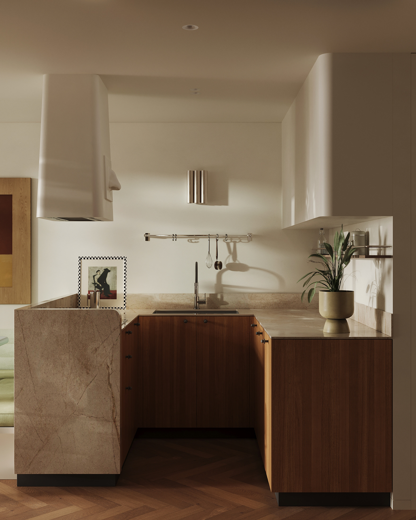 Renders of the small interesting apartment in Ukraine. 3Ds max and Corona render